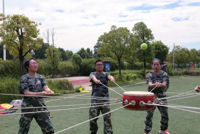 今天的拓展活動有四項(xiàng)內(nèi)容,所有的學(xué)員分成三個(gè)組,大家選出了自己心目中隊(duì)長和副隊(duì)長,一隊(duì)精英隊(duì),二隊(duì)輝煌隊(duì),三隊(duì)是戰(zhàn)狼隊(duì),一個(gè)個(gè)響亮的隊(duì)名,一個(gè)個(gè)錚錚的口號,大家士氣倍增,干勁倍足。在150秒內(nèi)完成四個(gè)挑戰(zhàn)項(xiàng)目,這是很好的檢驗(yàn)團(tuán)隊(duì)力量的項(xiàng)目。擊鼓顛球,多人拽繩拉鼓,小球在鼓上顛球不少于8個(gè),活動才算通過,否則球落地重新開始。這檢驗(yàn)的是團(tuán)隊(duì)的平衡力和配合協(xié)作力。第二個(gè)項(xiàng)目就是隊(duì)員手拉手,套繩從每個(gè)人身上傳過,手不允許松開,考驗(yàn)的是隊(duì)友之間的配合默契度。第三個(gè)項(xiàng)目是巧運(yùn)乒乓球,每個(gè)隊(duì)員手里拿著一個(gè)塑料小槽,球在小槽里流動,大家一個(gè)一個(gè)的接籠,不允許落地,否則重新開始。Zui后一個(gè)項(xiàng)目是大家站成圓形,分別向左右隊(duì)員背部擊掌,說出一個(gè)字擊一掌,說出兩個(gè)字擊兩掌,大家必須整齊劃一,Zui后左右擊八次掌喊出“我們是Zui棒的團(tuán)隊(duì)”這個(gè)口號,如果團(tuán)隊(duì)配合不協(xié)調(diào),聽出一個(gè)雜音都要重新開始,這是團(tuán)隊(duì)士氣的Zui佳考驗(yàn)。