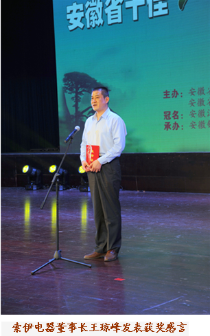 索伊電器董事長王瓊峰榮獲安徽省“十佳環(huán)保人士”榮譽(yù)稱號(hào)