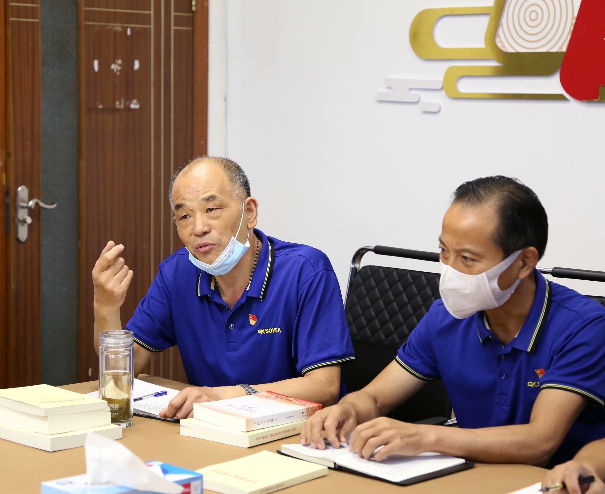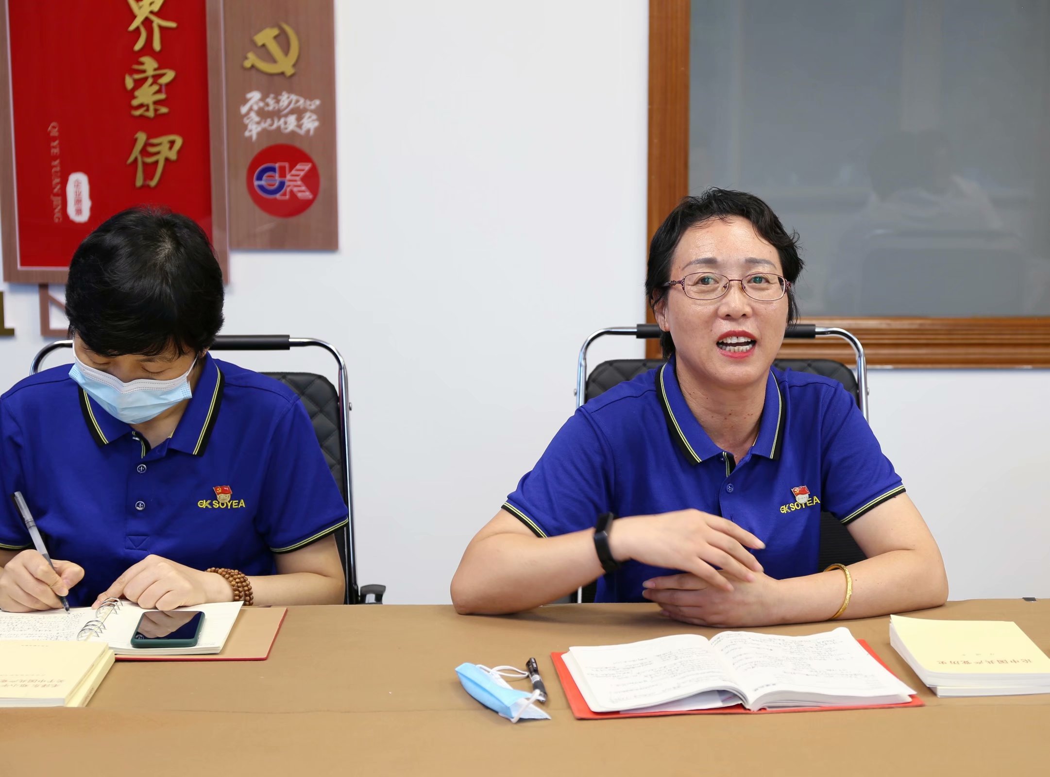 最后工委副書記王燊指出:各位黨員的發言結合本職工作,談感想、說體會、議方向,說明索伊廣大黨員的素質很高,學習力很強。希望大家要認真學習好、深入貫徹好、全面落實好習近平總書記“七一”重要講話精神,不斷地深化舉措,在實際工作中形成非公企業黨建品牌,為企業的發展凝聚力量。