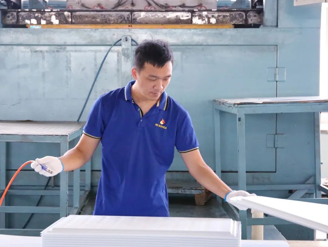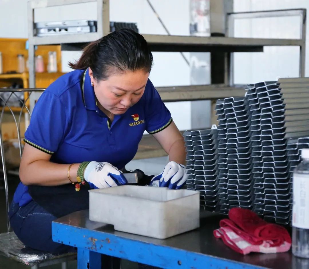 8月13日,共計有四個車間的32個崗位需要支援,上午六點半,由公司黨委書記、公司副總、公司財務(wù)總監(jiān)及廣大科室干部共計首批33人來到生產(chǎn)車間。服從車間安排,哪里需要哪里上,有的是第一次參加義務(wù)勞動,員工師傅們手把手的教,管理干部們認真學(xué)習(xí),傾聽講解,很快掌握要領(lǐng)。有的崗位雖然有難度系數(shù),但邊學(xué)邊干,不懂就問,與一線員工們在一起工作,體驗他們的辛苦,感受他們的勤勞,收獲同甘共苦的快樂。汗水浸透著索伊藍的工裝,但大家的干勁不減,依然是揮汗如雨戰(zhàn)高溫,保質(zhì)保量保訂單,與企業(yè)同呼吸,共命運。