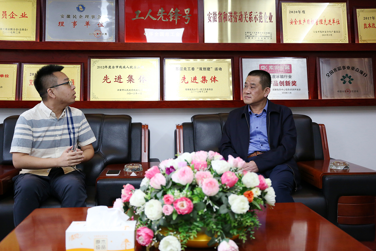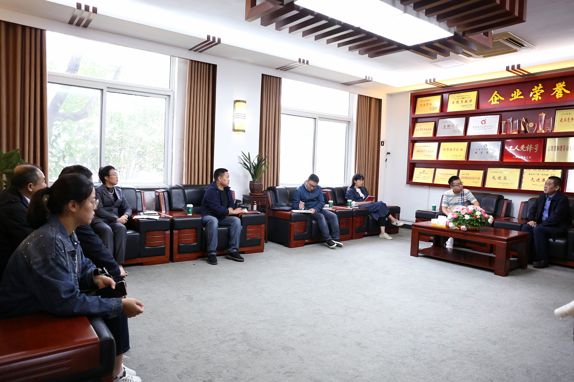 2021年10月13日,退役軍人事務部宣傳中心主任《中國退役軍人》雜志總編輯傅雪柳、宣傳中心編輯出版組組長倪光輝、宣傳中心新媒體記者劉學、宣傳中心編輯出版組記者文豪、安徽省退役軍人事務廳副廳長高峰等一行來索伊集團與董事長王瓊峰就“退役軍人不褪色”事跡進行了座談。