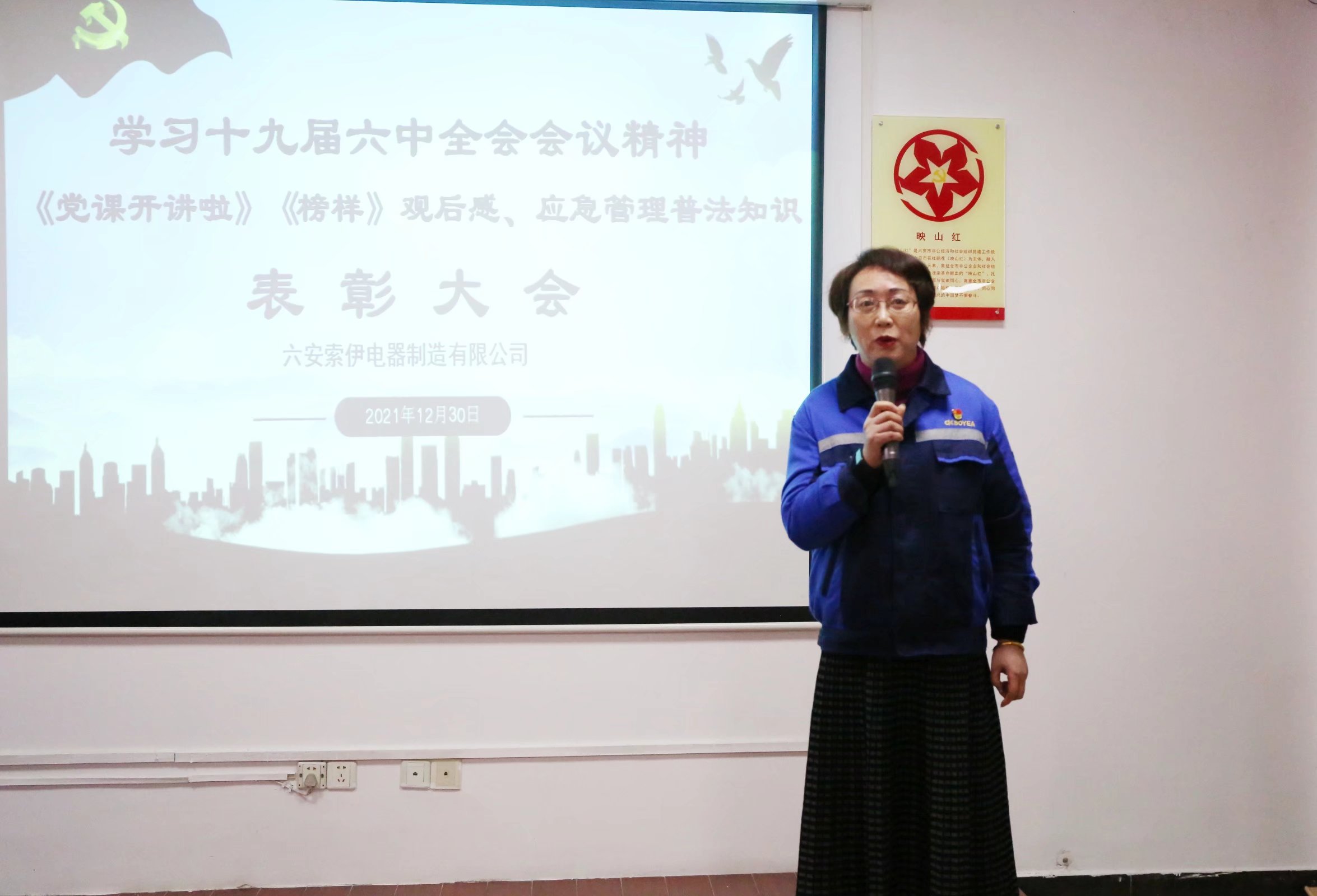 為深入貫徹學(xué)習(xí)黨的十九屆六中全會(huì)精神,進(jìn)一步強(qiáng)化黨員的大局意識(shí)、責(zé)任意識(shí)和敬業(yè)愛崗意識(shí),2021年12月30日下午,索伊公司黨委在黨員活動(dòng)室召開全體黨員大會(huì),會(huì)議主旨是學(xué)習(xí)黨的十九屆六中全會(huì)精神,結(jié)合公司2022年的全面預(yù)算管理目標(biāo),統(tǒng)一思想,凝心聚力,進(jìn)行層層分解落實(shí),做到人人有指標(biāo),個(gè)個(gè)有擔(dān)子,全力以赴,開好局,起好步,努力完成公司2022年奮斗目標(biāo)。