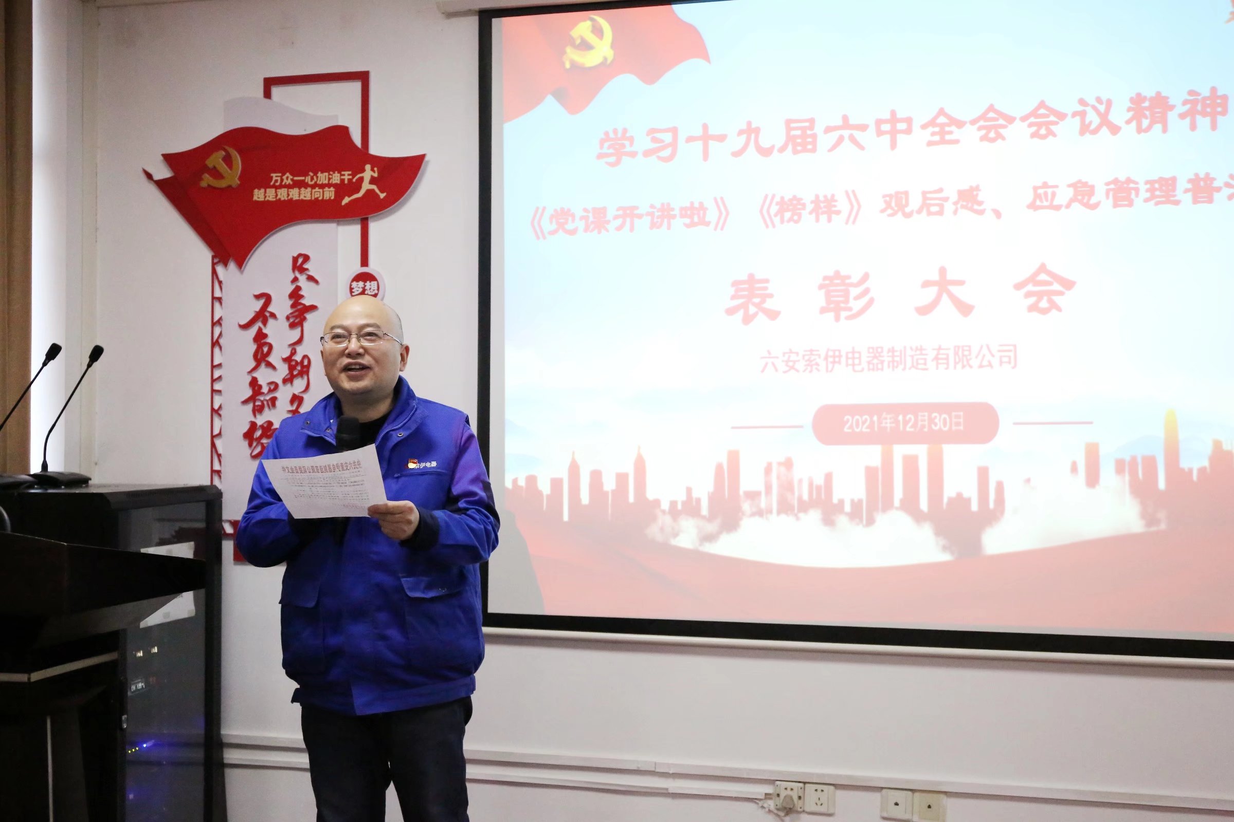 全體黨員通過觀看《黨課開講了》和《榜樣6》視頻,并撰寫觀后感,共計(jì)收到90篇感后觀,從中評(píng)出10篇優(yōu)秀作品,公司黨委給予表彰,希望更多的黨員加強(qiáng)學(xué)習(xí),并運(yùn)用到實(shí)踐工作中。同時(shí)我公司廣大黨員和員工共計(jì)500余人積極參加第三屆全國應(yīng)急管理普法知識(shí)競賽,通過一個(gè)月每天的認(rèn)真答題,更多的員工在學(xué)習(xí)中提升自己的應(yīng)急普法知識(shí),為公司爭光。公司黨委對(duì)進(jìn)入開發(fā)區(qū)前100名索伊員工進(jìn)行表彰,我公司共計(jì)9人名列榜單。