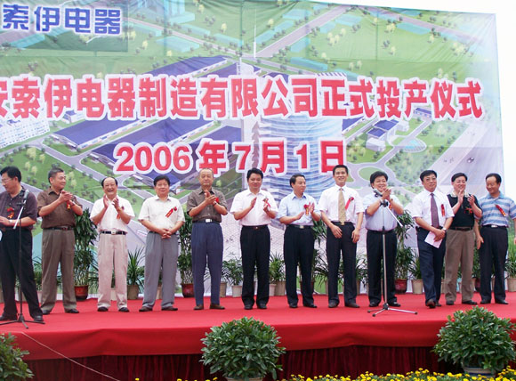 2006年7月1日,六安索伊電器制造有限公司第一條年產(chǎn)30萬(wàn)臺(tái)電冰箱生產(chǎn)線(xiàn)建成投產(chǎn)。市領(lǐng)導(dǎo)倪發(fā)科、湯林祥、程世龍、汪永義、潘忠余、楊光祥、趙懷華等出席儀式。市委書(shū)記、市人大常委會(huì)主任倪發(fā)科、市長(zhǎng)湯林祥為第一臺(tái)六安生產(chǎn)的索伊電冰箱下線(xiàn)剪彩。