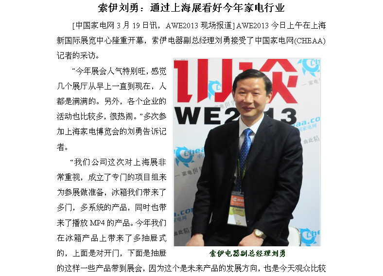 索伊劉勇:通過上海展看好今年家電行業(yè)